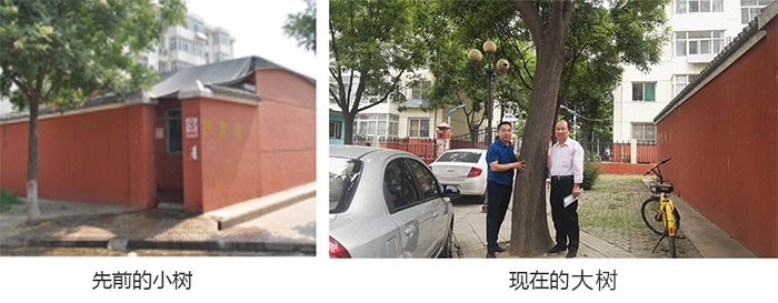 2005年建站后栽的小槐樹直徑只有6—8公分, 2009年4月23日輕烴燃氣《標準》定稿會在億德人公司召開,參觀的小區有南屯供氣站,當時小槐樹已長到10—12公分,現已是40多公分的國槐成材大樹,標志了供氣年齡。