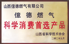 2002年9月山西省科學(xué)技術(shù)學(xué)會(huì)授予億德燃?xì)狻翱茖W(xué)消費(fèi)產(chǎn)品”榮譽(yù)稱號(hào)