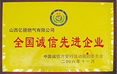 2006年11月中國(guó)誠(chéng)信萬(wàn)里行組委會(huì)授予山西億德燃?xì)庥邢薰尽叭珖?guó)誠(chéng)信企業(yè)”榮譽(yù)稱號(hào)