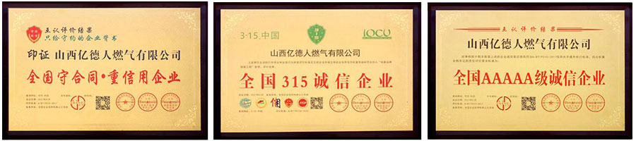 17、2005一2021年. 億德人冷制輕烴燃?xì)鈽s獲:中國(guó)牌子:中國(guó)產(chǎn)品:全國(guó)誠(chéng)信單位:科學(xué)消費(fèi)產(chǎn)品:免檢企業(yè):全國(guó)AAAAA級(jí)誠(chéng)信企業(yè):全國(guó)守合同重信用企業(yè):山西燃?xì)馐袌?chǎng)用戶滿意牌子:百家誠(chéng)信會(huì)員企業(yè):全國(guó)315誠(chéng)信企業(yè):等等榮譽(yù)稱號(hào)。